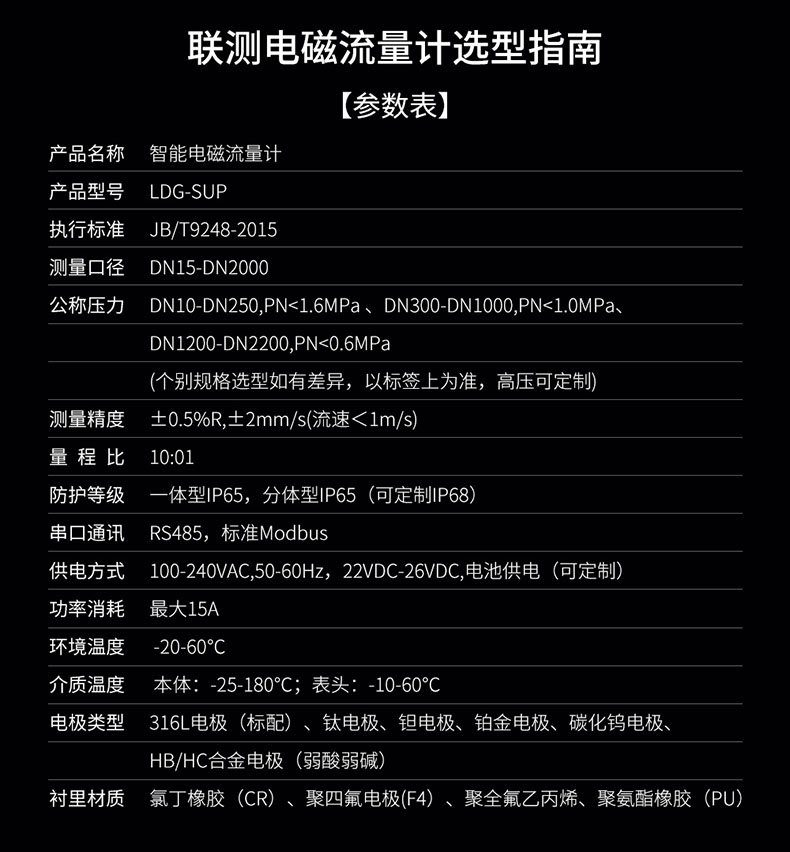 產(chǎn)品簡介:聯(lián)測LDG電磁流量計適用于化工助劑、海綿城市、給水排水、水利灌溉、水處理、污水處理(環(huán)保污水控制、化工污水、電鍍污水)、造紙漿液(紙漿)、泥漿、醫(yī)藥原料、食品等工農(nóng)業(yè)的生產(chǎn)公司過程流量測量和控制,標配485通訊功能。