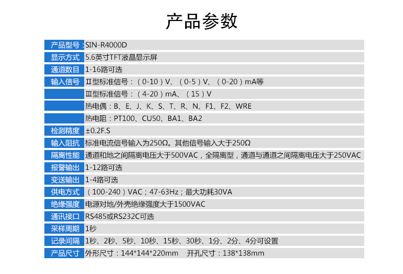 首頁 > 無紙記錄儀 聯測SIN-R4000D5.6英寸藍屏無紙記錄儀