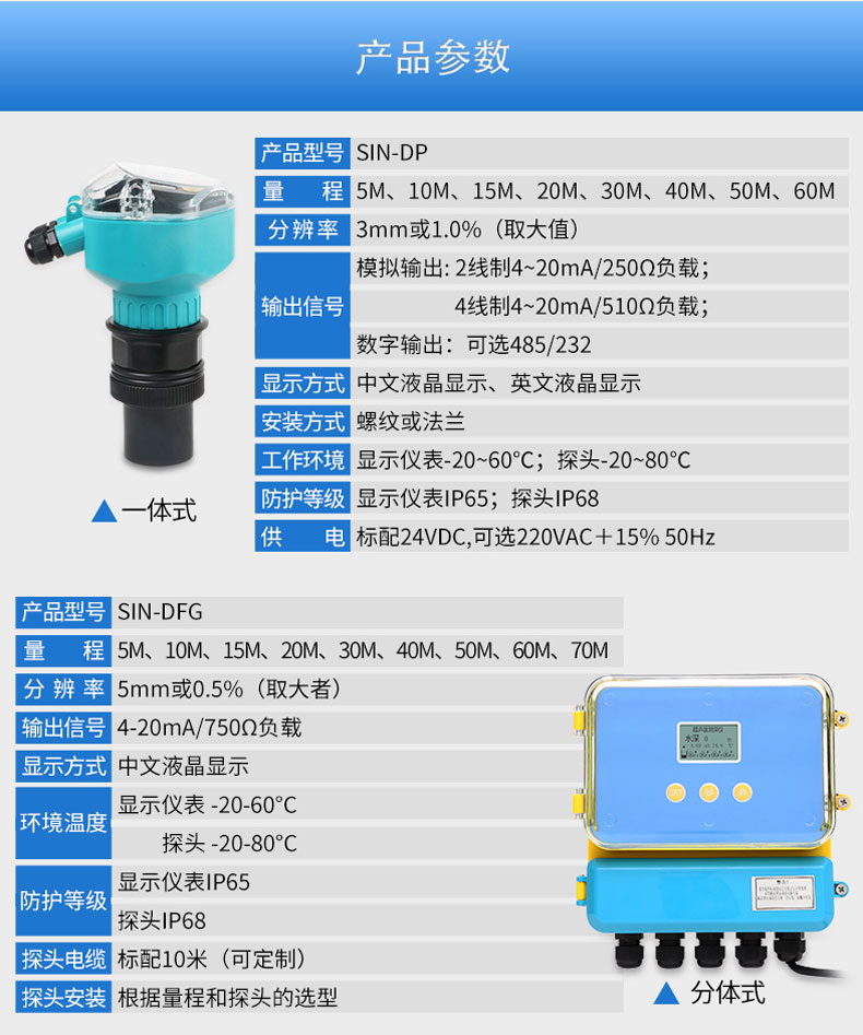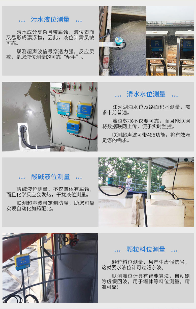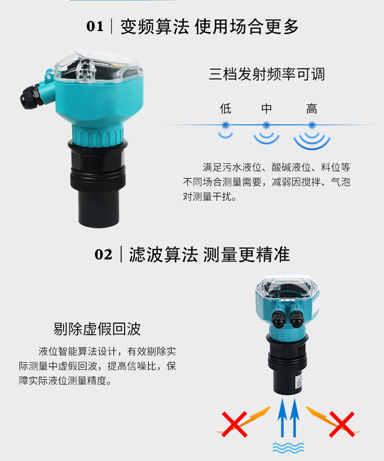 產品簡介:在測量中超聲波脈沖由傳感器(換能器)發出,聲波經液體表面反射后被同一傳感器接收或超聲波接收器,通過壓電晶體或磁致伸縮器件轉換成電信號,并由聲波的發射和接收之間的時間來計算傳感器到被測液體表面的距離。 由于采用非接觸的測量,被測介質幾乎不受限制,可廣泛用于各種液體和固體物料高度的測量。