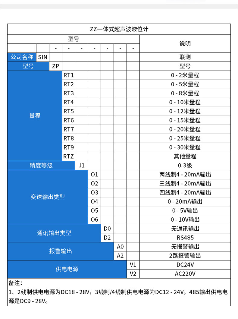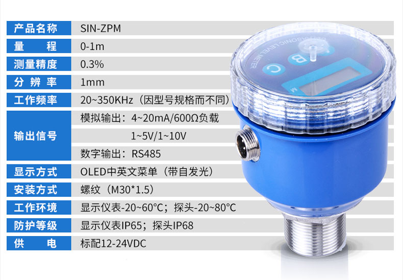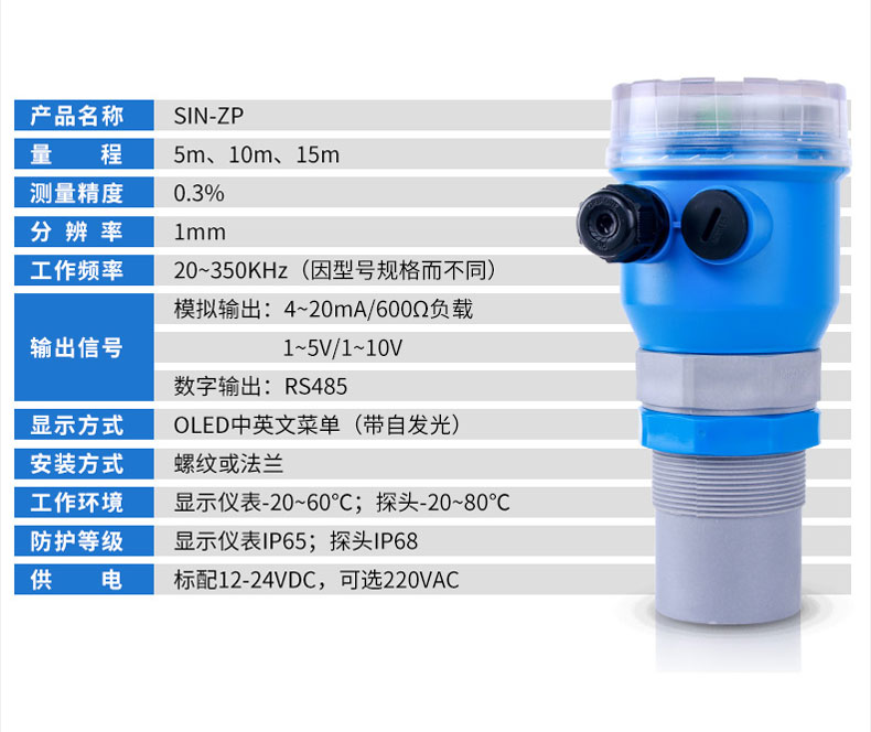 產品簡介:聯測SIN-ZP超聲波液位/物位計采用超聲波脈沖原理進行非接觸式的測量,是一種非接觸式、可靠性、性價比、易安裝維護的物位測量儀器。